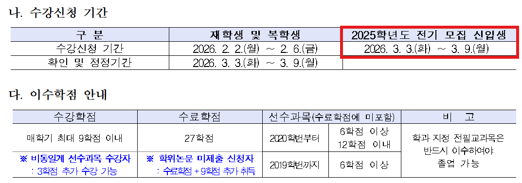 2026학년도 1학기 산업대학원 석사과정 신입생 수강신청 안내