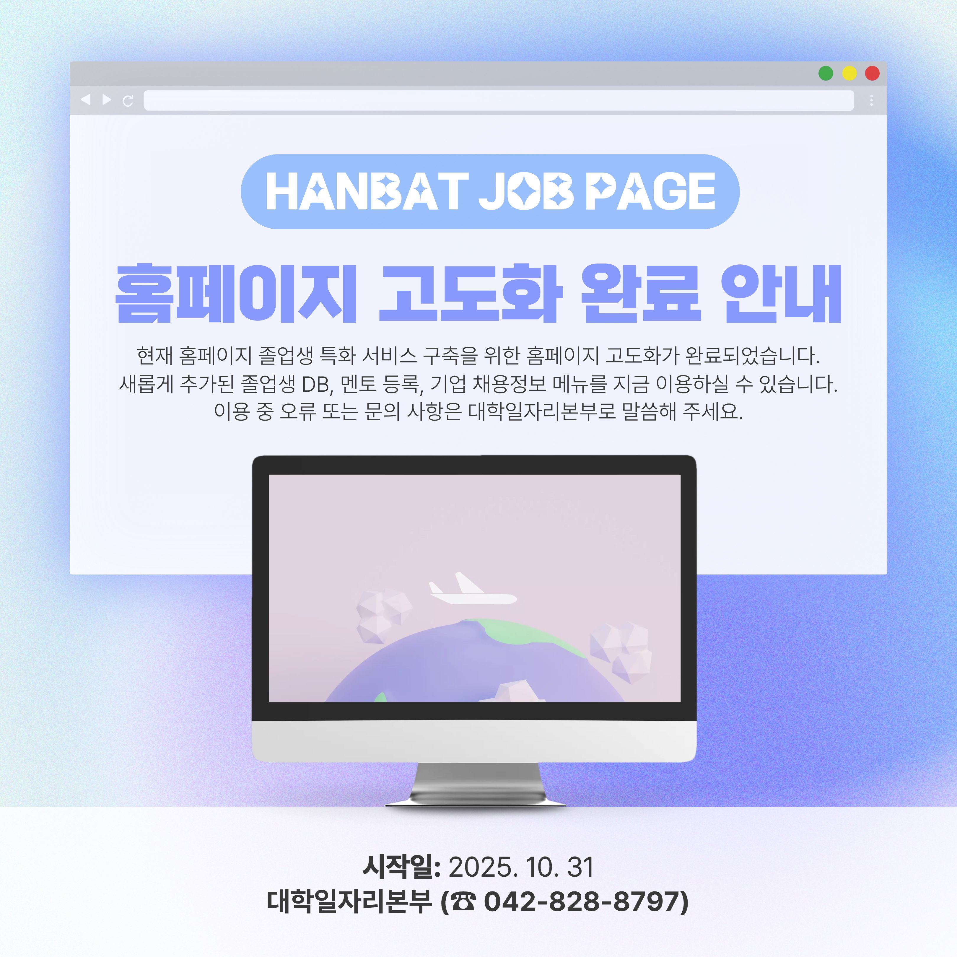 대학일자리본부 홈페이지가 아래와 같이 새롭게 개편되었습니다.