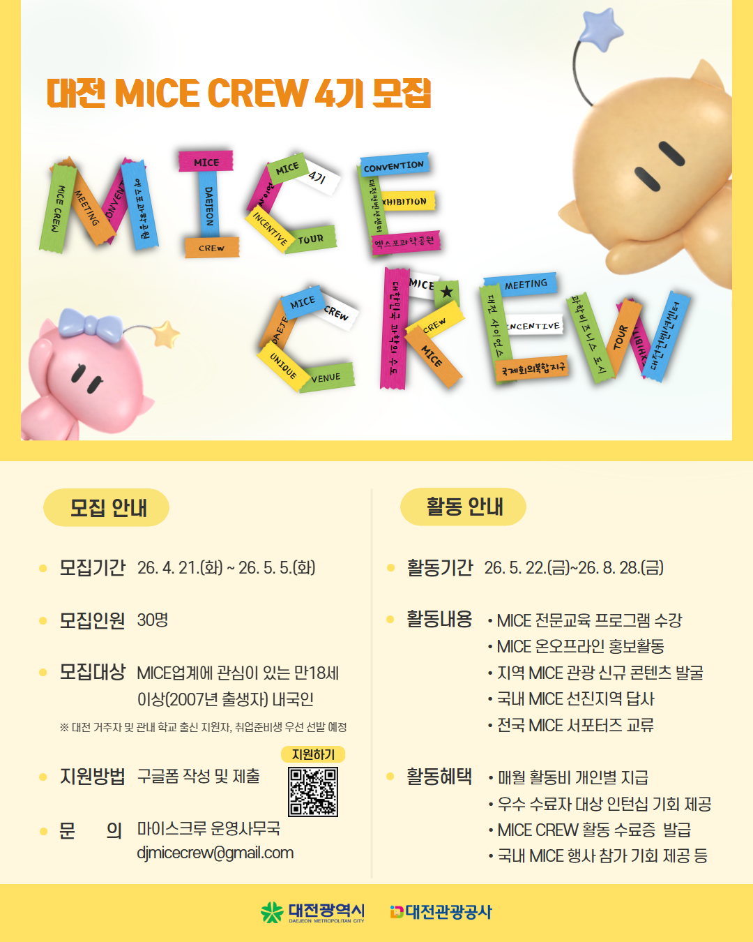 [대전관광공사] 2026 대전 MICE CREW 4기 참가자 모집 안내 새글