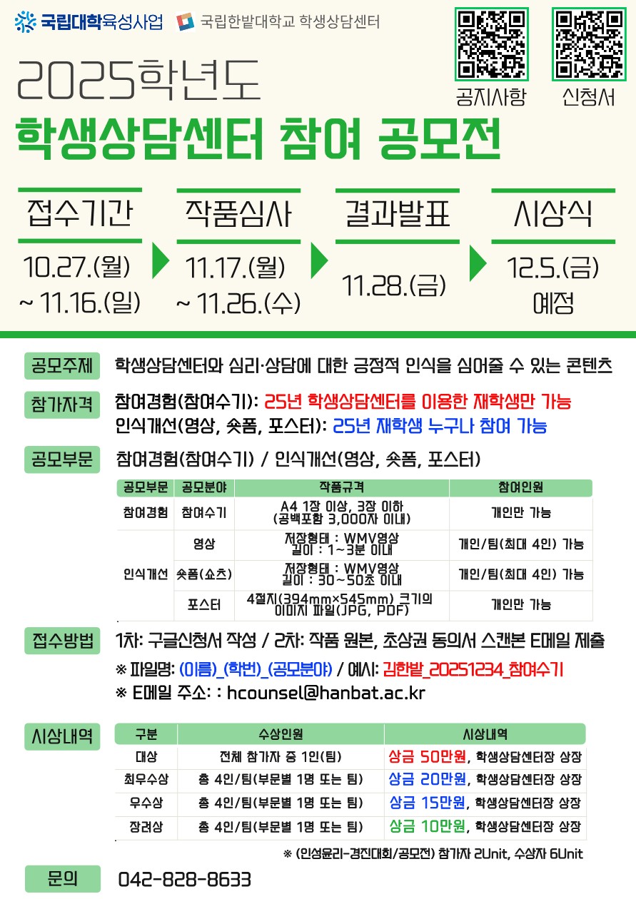 □ 2025학년도 학생상담센터 참여 공모전 운영 안내