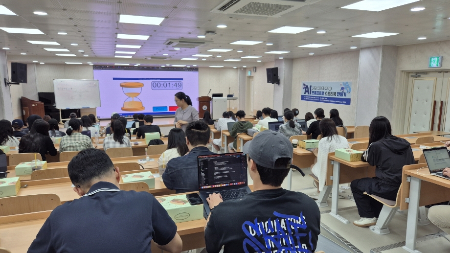 □ 우리 대학 영어영문학과는 29일 교내 인문사회관에서 디지털 인문학 역량 강화를 위한 특강 ‘AI 프롬프트로 스토리북 만들기’를 개최했다고 밝혔다.