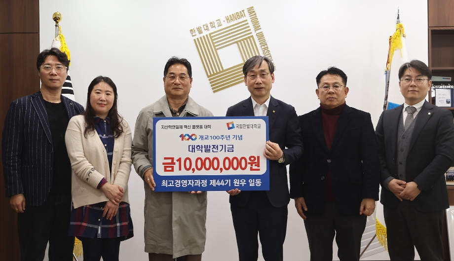 □ 우리 대학은 10일 산업대학원 최고경영자과정 제44기 원우회가 대학발전기금 1천만 원을 기부했다고 밝혔다.