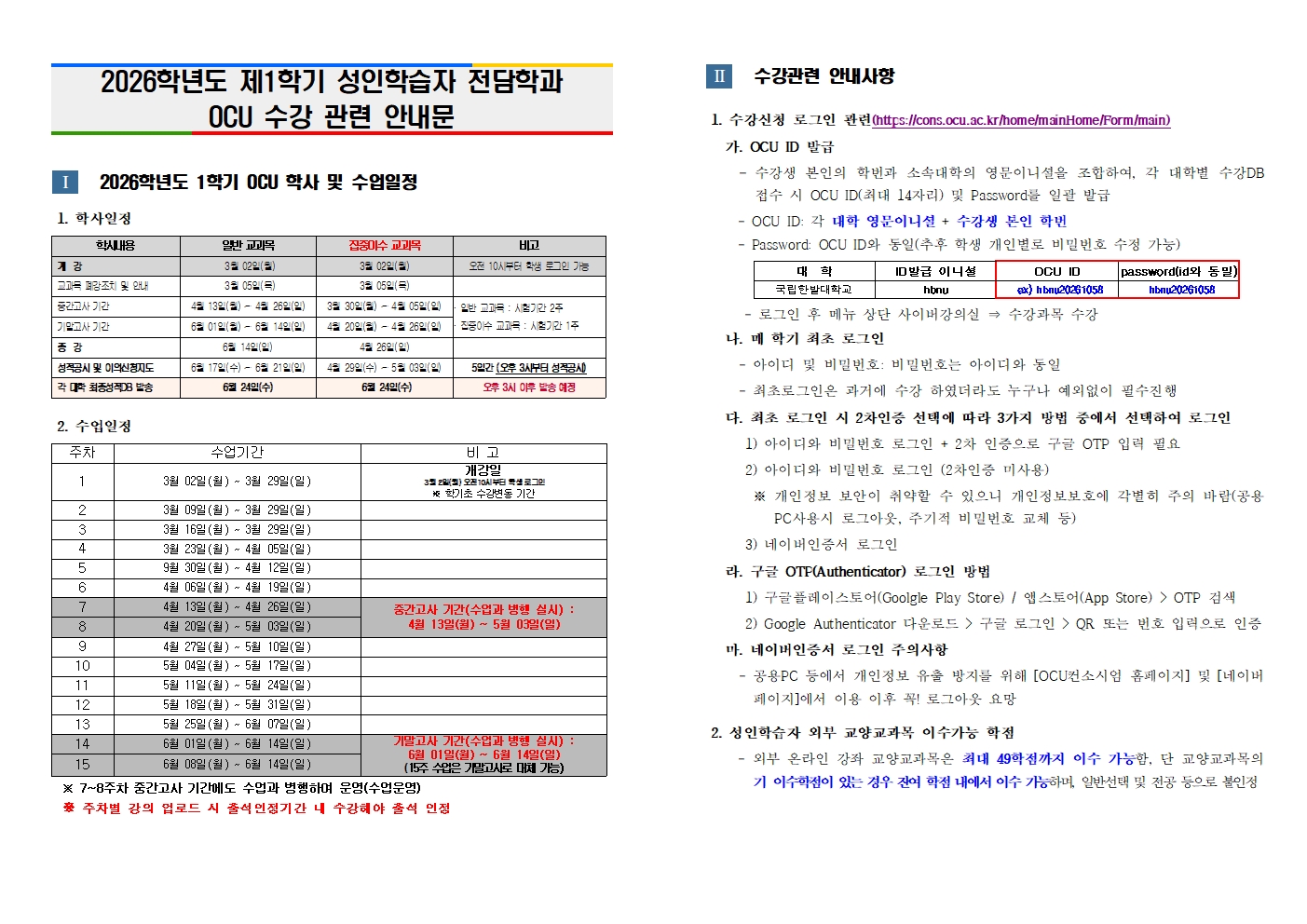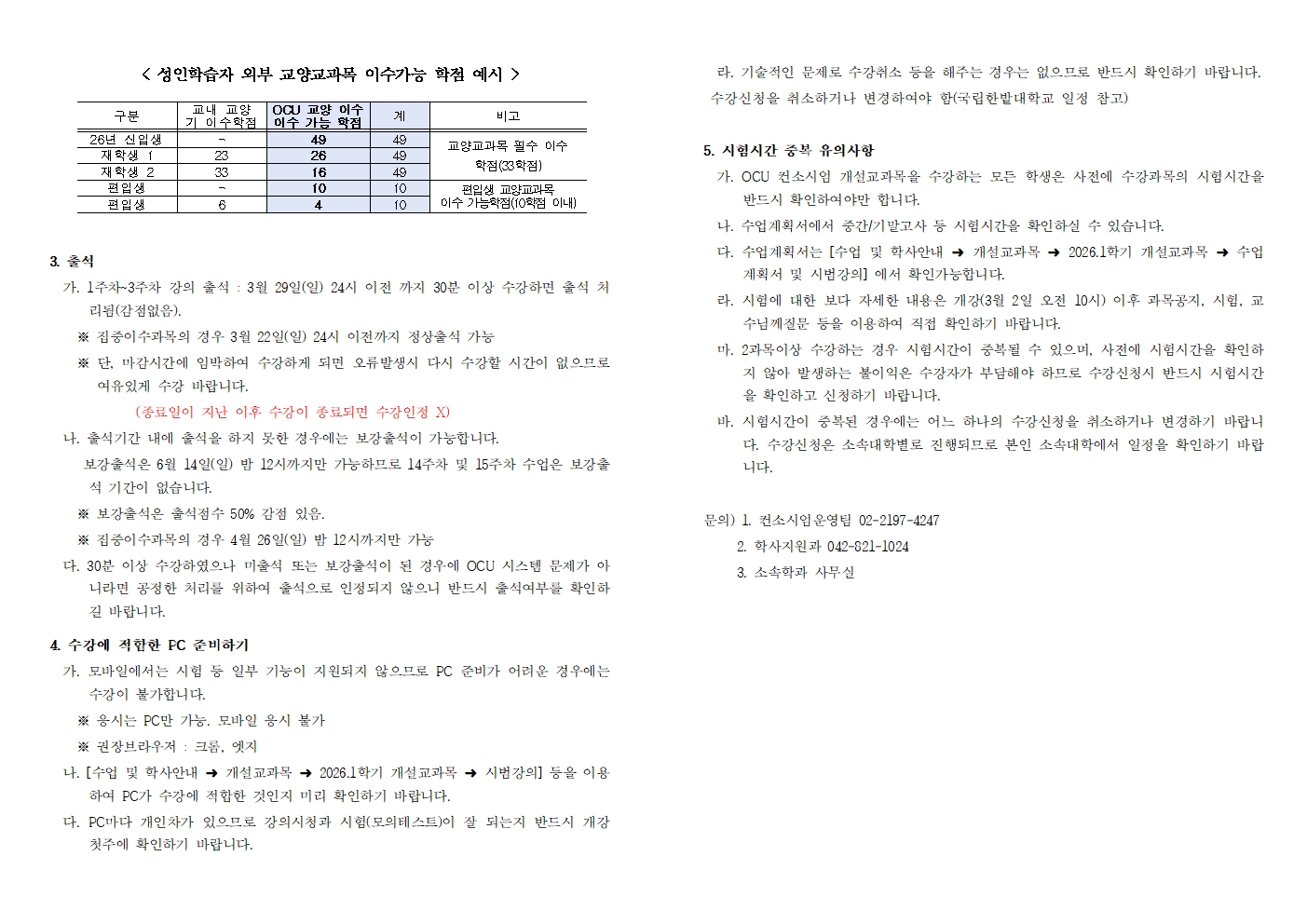 [학사지원과] 2026학년도 1학기 성인학습자 전담학과 OCU 수강관련 안내문
