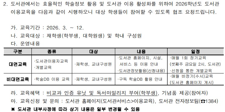 [도서관]2026학년도 도서관 이용 교육 안내
